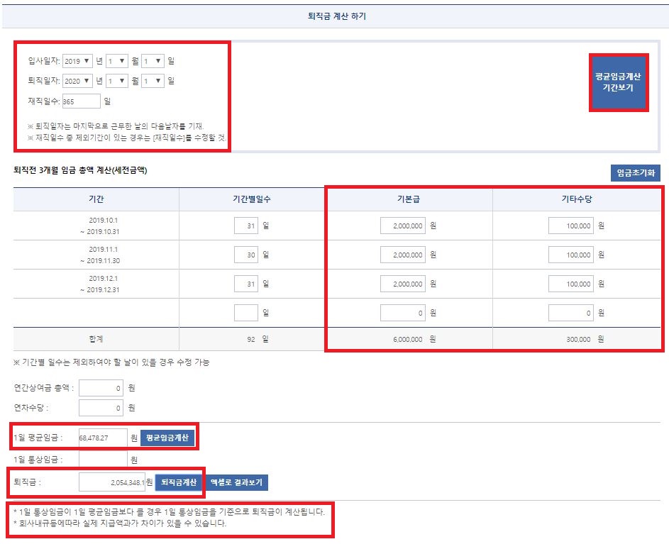 퇴직금 계산기 주의사항